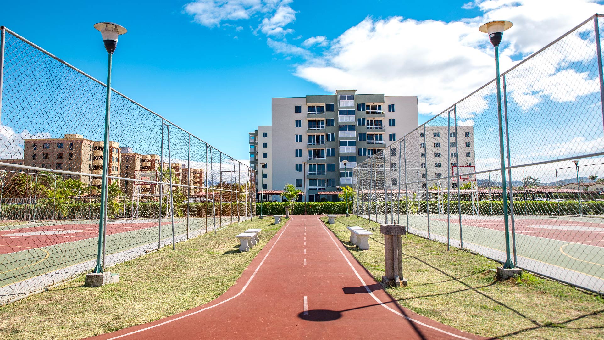 El proyecto tiene espacios dedicados al deporte, como en las canchas multiuso para jugar fútbol y básquetbol, la cancha tenis, la pista de trote y los 2,4 Km de acera que rodean el macro condominio.